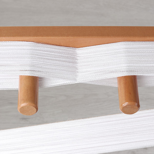 To create a warp of correct size and tension a warping frame is essential. This strong frame has pegs set firmly at regular intervals.